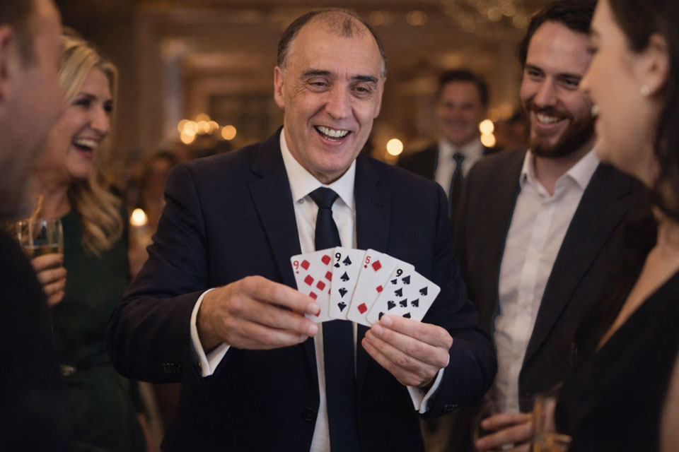 QUALITY ENTERTAINMENT FOR ANY EVENTA professional entertainer of the highest quality with a wealth of experience in presenting a variety of original, award winning magic entertainments to suit any situation including: Exhibitions and Promotions, Corporate Entertainment and Presentations, Weddings, Private Functions and Events. To be long remembered and, very importantly, always associated with your event. No matter how important your guests, you can rest assured that they will be highly entertained by sleight-of-hand presentations which may be performed under any conditions and which will stand up to the closest scrutiny. Unfailingly, whatever the format, you can be confident that this will be a popular and much talked about attraction. Suffice to say that my future engagements result almost entirely from direct referral from those that have experienced it for themselves.